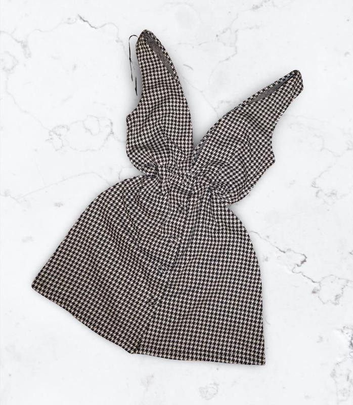 сарафан від primark з глибоким V-подібним вирізом та принтом «Houndstooth» у чорно-білих тонах.