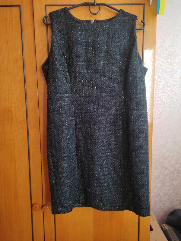 Черный сарафан на подкладке.Ткань полотна, не тянется, с блестками.Позади большая молния.Довжина 81.ног 100,бедра 100.