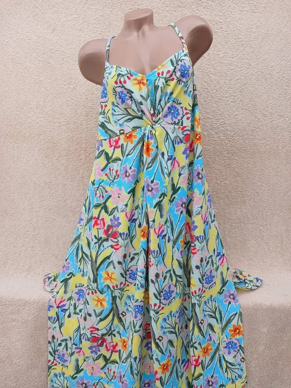 Суперский трикотажный сарафан в цветочный принт,по бокам разрезики,состояние идеал ПО груди 60-67, ПО бедра 77-84, длина 119/брители регулируються Замeры вeздe половина