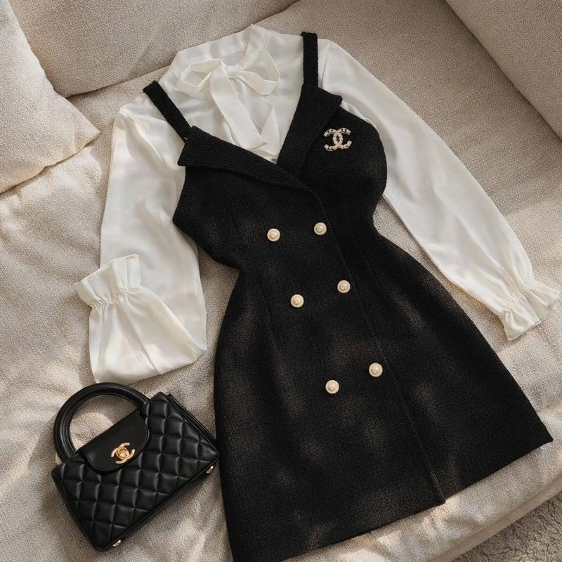 Комплект 2-ка с брошью✨ Элегантность, которая всегда в тренде 🤍🖤 Модель: 181 Размеры: S-M; M-L Ткань: твид + софт Цвет: черный + белый Брошь: как на фото ✨ Длина сарафана: 80 см Идеальный вариант для стильных образов — как на каждый день, так и для особых событий ✨