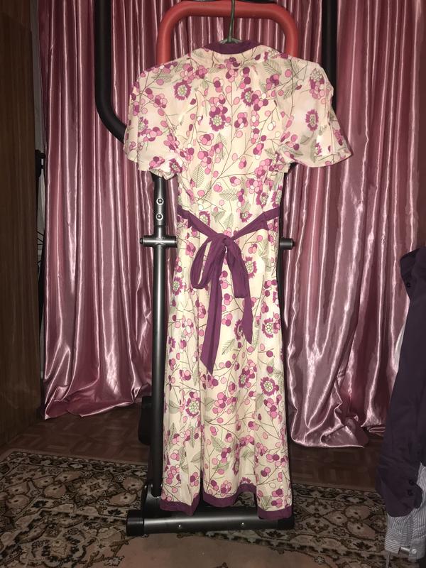 Платье просто суперское, если б не мало мне было, я бы его не продавала Очень красивое, ткань легкая, натуральная, не жарко в нем На рукавчике сзади зашито, не заметно вообще ПОГ 44-46 Талия ПО 40 Плечи 38 Длинна 103