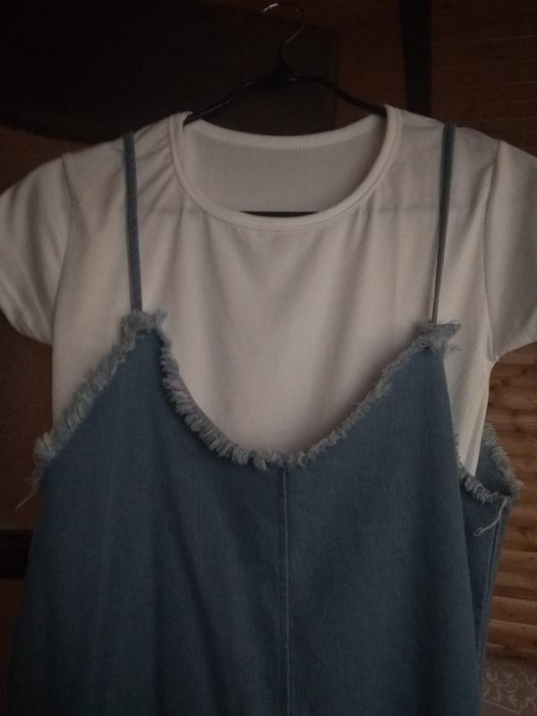 Джинсовий сарафан з футболкою в комплекті оверсайз
