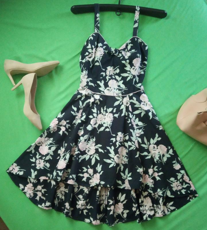 Сукня- сарафан Оригінальна модель Гарний стан Спідниця- трапеція з асиметрією ( спереду коротше, ніж по спині) Фото на тілі нема Дивіться всі оголошення Знижка в разі купівлі двох і більше речей