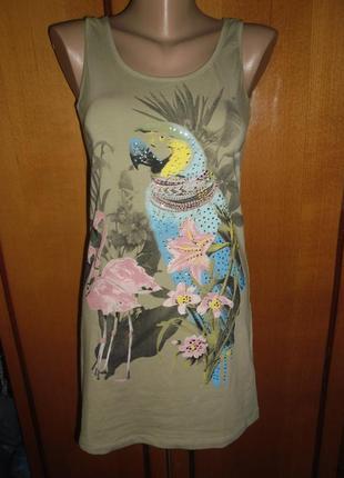 Котоновое платье- майка со стразами. ПОГ - 42 м длина от плеча - 75 см.