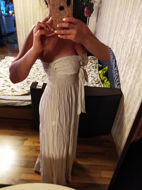 Суперовый, легкий, воздушный, не весомый,. Просто великолепный сарафан. Одет на рост 165-, по груди 38(по бокам прихватило на пару см) при желании можно отпустить с обеих сторон. Длина 121