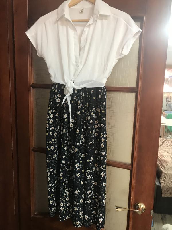 Сарафан в отличном состоянии Размер с-л Под грудью, где заканчивается белая часть 30-40см Подкладки нет, то ткань в цветочек очень плотная, не просвечивает