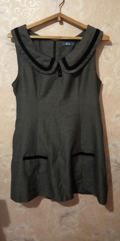 Готуємося до осені ! Гарний сарафан на підкладці, на вороті та карманах нашитий бархат. Стан нової речі. Можна носити з теплим або прозорим гольфом. Вказаний 14 розмір, але гарно сяде й на 12. Річ Як варіант або для доньки старшокласниці. За додатковою інформацією звертайтесь. длина от плеча 87, пог 50, пот 47. За счёт замочка одевать легко. Не тянется.