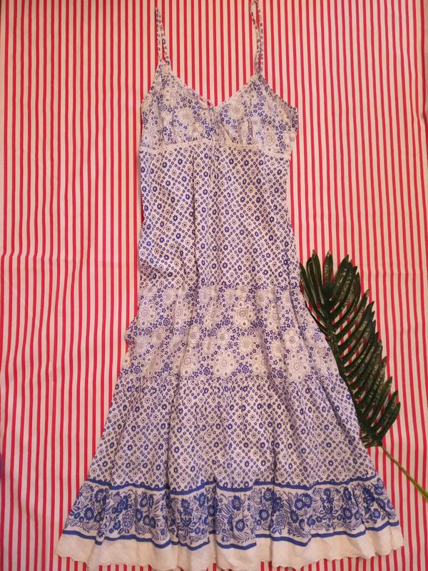 Сине-белый сарафан в пол на бретельках с подкладкой