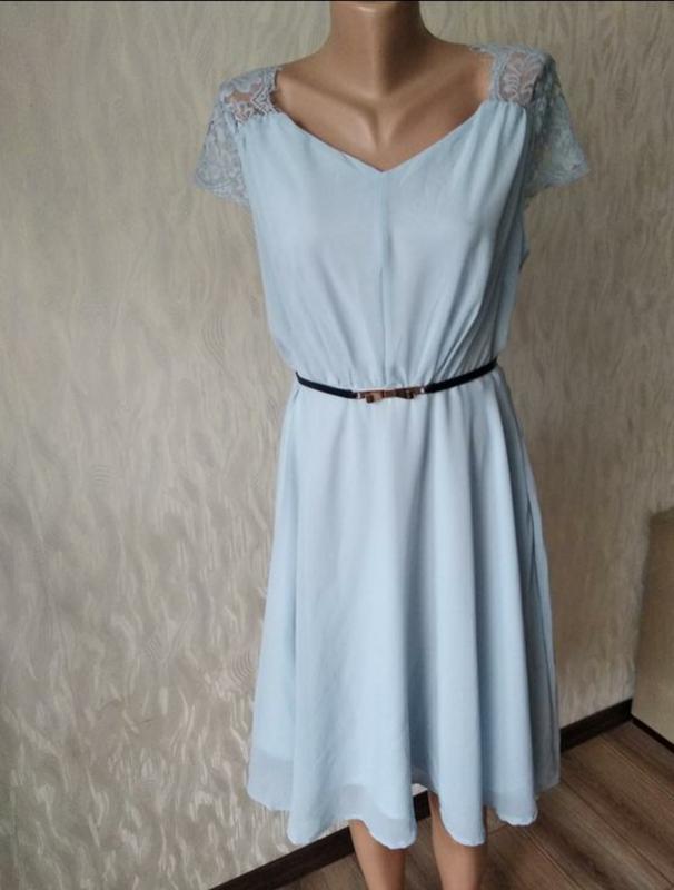Ніжне приємне романтичне плаття, рукавчик та спинка з кружевом,низ шифон з підкладкою, що не світиться. Заміри Довжина 98 см /півобхват по грудях 46 см /півобхват під рукавами 48 см / ПОТ 41 см / довжина від спинки до талії -34см від талії до низ 64 см, низ пишний на любі бедра згідно розміру. Фото зроблено при різному освітленні. Було одягнено один раз.