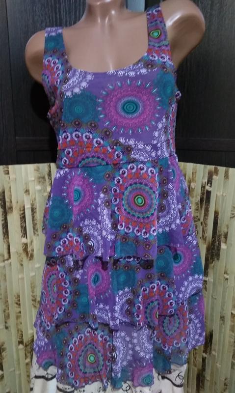 Красивый летний сарафан Etam(Нидерланды) из материала -мелкой эластичной сеточки( полиэстера). С подкладкой. Три оборки. Размер L Состояние идеальнейшее. ЗАМЕРЫ В СПОКОЙНОМ СОСТОЯНИИ: Ширина в плечах –34 см Ширина в груди- 47,5 см Ширина в поясе 45 см Ширина в бёдрах примерно 52 см. Точно не скажу-оно расширяется и есть оборки. Длина изделия- 85 см Отправлю Новой почтой или Укрпочтой (в очень редких случаях) по полной предоплате на карту Приватбанка . Налож.платёж возможен только Новой почтой с предоплатой за доставку в обе стороны в размере 100 грн(автоматически вычитается из общей суммы).