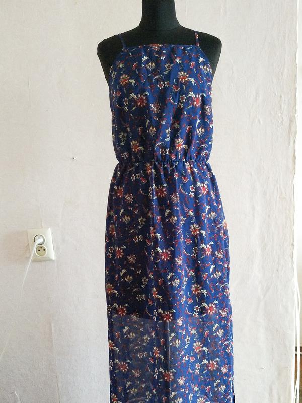 Дуже крутий літній сарафан. Дуже легкий. Довжина в підлогу, розрізи з боків. На фото не можу передати як круто буде виглядати. Не пошкодуєте про таке придбання))) Розмір вказаний 8, але за рахунок гумки, яка трохи нижче грудей, відмінно буде виглядати на 10.