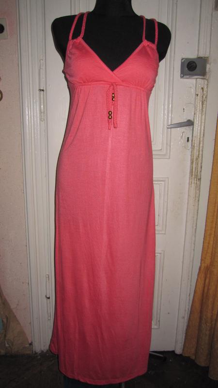сарафан кораллового цвета.65 полиэстер.35 вискоза.ПОГ 43.ПОТ 39.на талии резинка.длина 143см