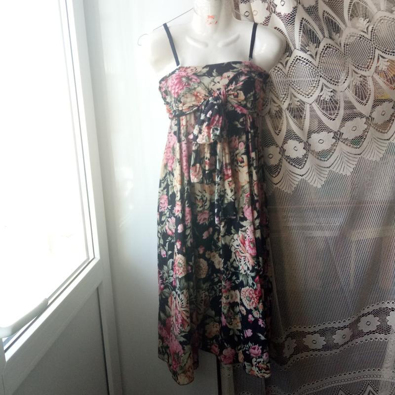 Очень легкий сарафан из 100% хлопка на подкладке. бретели отстегиваются. размер S/M длина 90см (без учета бретелей) ПОГ 42см (сзади резинка, что позволяет хорошо растягиваться) ПОТ свободно ПОБ свободно, т.к. юбка солнце состояние идеальное новое и без дефектов. Не надевалось