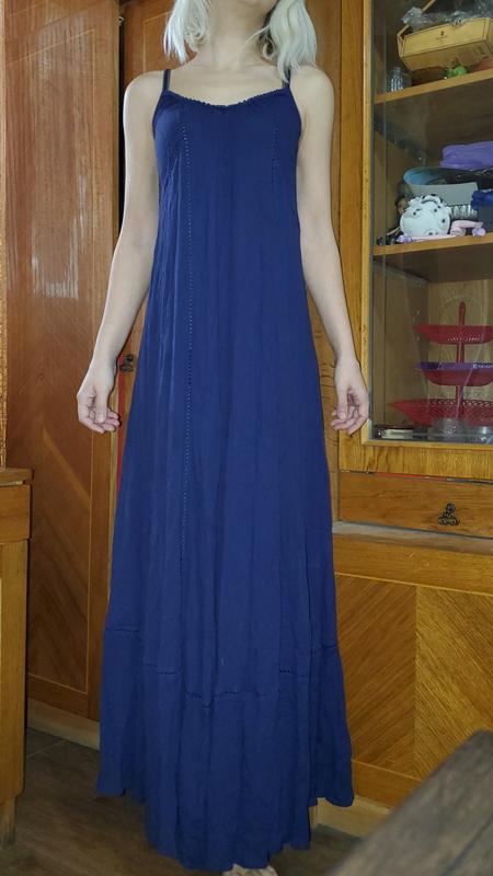 Сарафан Next р. ХС-С. Ткань 100% вискоза жатка, брители регулируются, тёмно-синий цвет, вставки как бы кружево. На фото рост 160см 83-64-83. Состояние идеальное. Замеры по запросу. Возврат не предусмотрен.