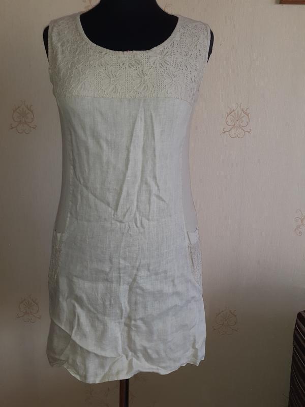 Сукня з льону. В ІДЕАЛЬНОМУ СТАНІ!!! Одягнута 3 рази. Розмір М. По бокам є вставки, які тягнуться