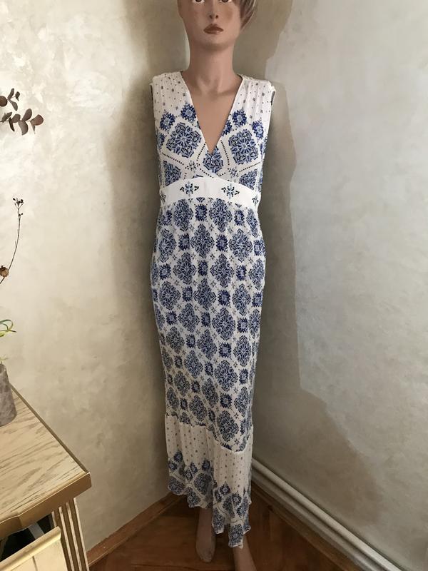 Плаття біле з голубим візерунком Дуже гарно витягує фігуру