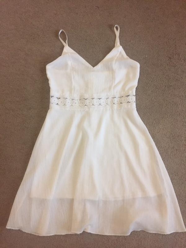 Коктельное платье из ткани жатка (без глажки)Кремовый цвет. Пояс кружево. Бретели регулируемые. Состав на фото. ПОГ-43см ПОТ-38см длинна по спинке-62см спинка Бретели (резинка)-30см Был надет 1 раз. Состояние идеальное ( без нюансов)