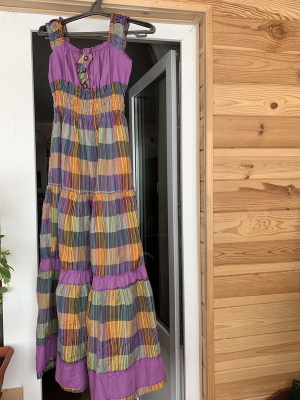 Клетчатый, комбинированный, фасон «Татьянка», украшен пуговичками
