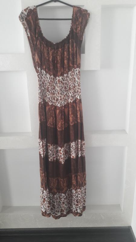 Сарафан из собственного гардероба. Носила пару раз, так как в наличии очень много других вещей. Теперь просто висит в шкафу. Подойдет на размер 48,50,52,54. Длина изделия 130 см. ПОГ - 38 см, ПОТ - 32 см (но так как на талии резинка можно растянуть до 50 см), ПОБ - 50 см.