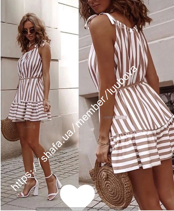 (903) Летний сарафан на бретелях принт в полоску и в горох https://shafa.ua/member/luubova – это огромный выбор стильных платьев и сарафанов. У нас вы можете купить современную женскую одежу, которая подчеркнет не только прелести фигуры, а еще чувство вкуса и индивидуальность. В линейке летних нарядов присутствуют разнообразные модели на любой выбор – от легких молодежных до сдержанных консервативных изделий. Предлагаем к покупке летний сарафан на бретелях в двух стильных принтованых расцветках. Свободный крой – идеальное решение для знойных летних дней. Летний сарафан с воланом свободно сидит на фигуре, не обтягивая и не доставляя дискомфортных ощущений. Тонкие бретели завязываются на плечах в милые бантики, создавая игривый образ. В комплекте есть съемный тонкий поясок, которым легко подчеркнуть талию. Качественная ткань софт идеально подходит для создания данной модели. Материал имеет ряд преимуществ: - легкий и воздушный; - приятный на ощупь - воздухопроницаемый; - прост в уходе. Если нужен особенный летний наряд – мы рекомендуем сарафан на бретелях! В нашем интернет-магазине эту модель можно купить по самой приемлемой цене. Оформляйте заказ через корзину на сайте, или пишите в сообщениях – мы не заставим долго ждать – вас ждет быстрый сервис и отменное качество! Характеристики Стиль:Молодежный Сезон:Лето Длина по спинке:78 см Таблица размеров Наличие на складе Цвет 42-44 46-48 Белый в полоску ✓ ✓ Черный в горох ✓ ✓ Цвета в наличии.