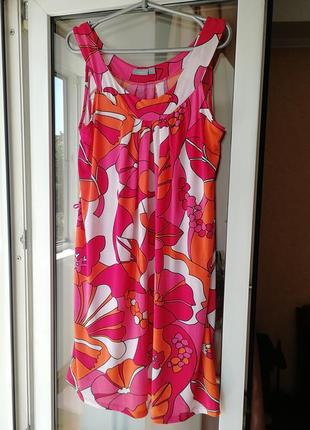 Отправка Новой почтой каждый день, Укрпочтой 2 раза в неделю. Оплата на карту. 💲Акция!💲 При покупке 3-х вещей пересылка за мой счёт!🎁 Яркое лёгкое платье сарафан. Материал хорошо тянется. Есть петельки для тонкого пояса. Размер L, но подойдёт и на больший. Есть несколько маленьких зацепок, почти незаметных (см. последнее фото). 📏 Пог 51-55 см. Поб 65 см. Полуобхват низа 67 см. Длина 96 см.