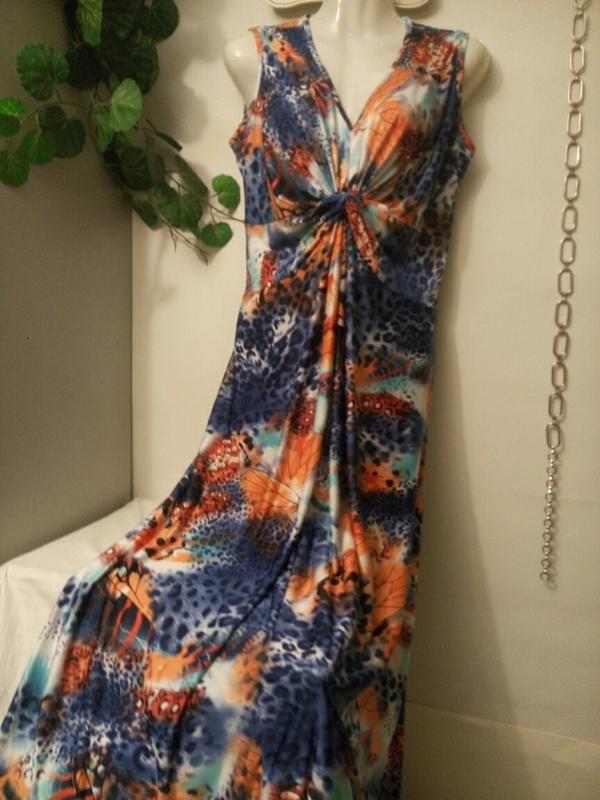 яскравий, прохолодний, в ідеальному стані без дефектів. чудово тягнеться, не мнеться, що великий плюс в таку спеку плечі 38, пахви 49+++57 пройма 21+24, побіди 57+++63++ довжина від плеча 145 довжина від плеча до талії 42 см
