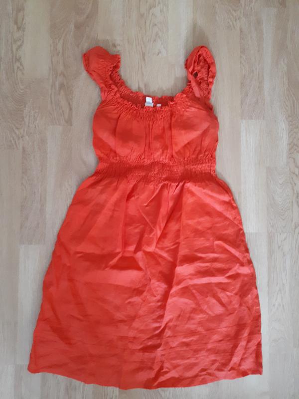 Сарафан яркого цвета. Ткань похожа на лён. Талия на резике. Смотриться интересно. Размер с-м. Дополнение замеры сброшу.