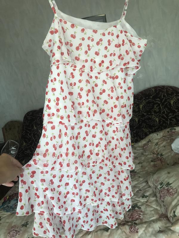 Сарафан в вишенки Спереди волане, сзади прямая ткань На подкладке, не светится Легкий