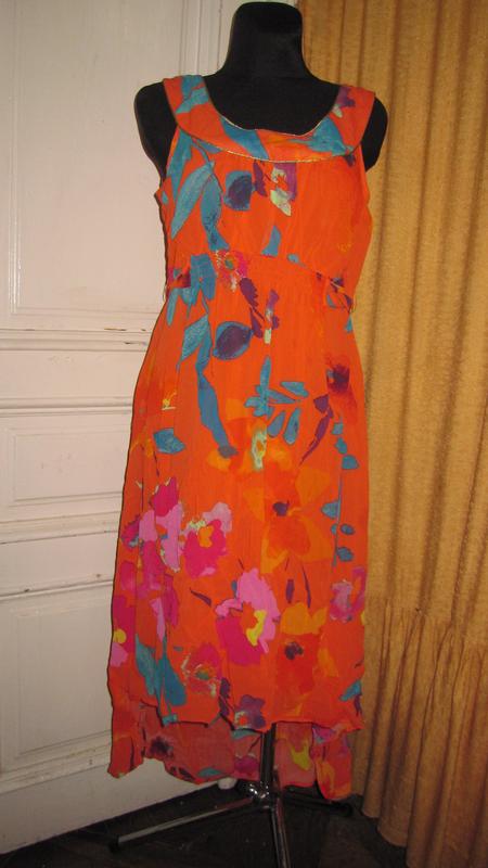 сарафан оранжевого цвета.вискоза.ПОГ 50.ПОТ 45.ПОБ 65.длина переда 108.зад-136см