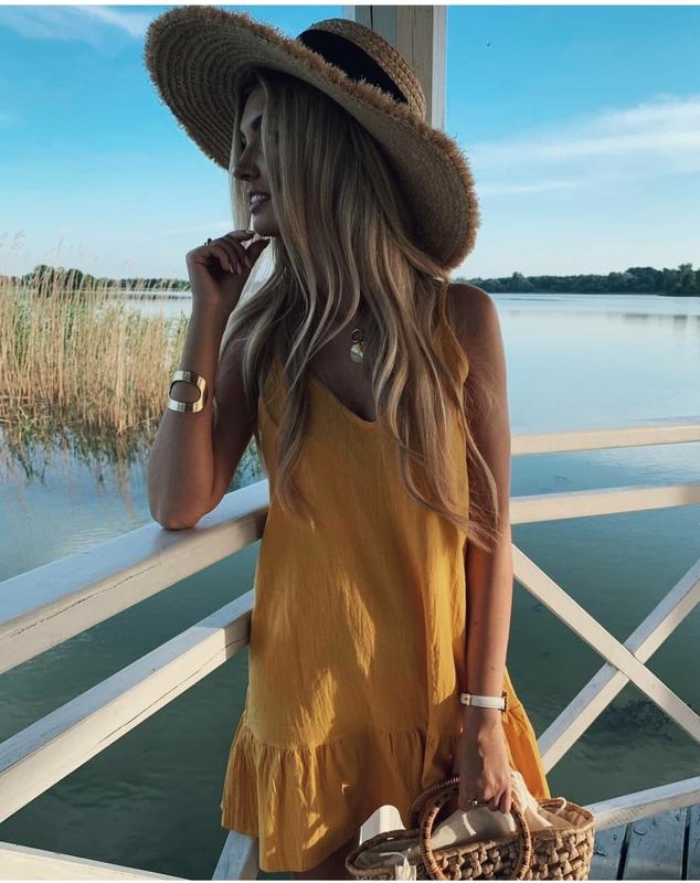 Легкое летнее платье, горчичного цвета. Тканина: льон жатка. Размер М (44) длина 80 см. Платье новенькое с этикеткой.
