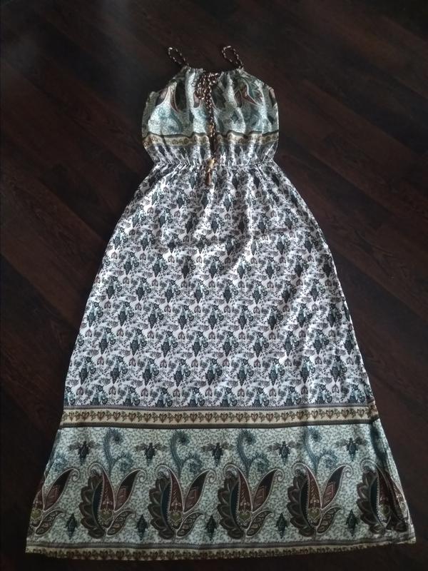 Новый, очень красивый, летний сарафан Пояс на тонкой резинке Длина - 148см Ширина от подмышки к подмышки - 47см Пояс резинку не натягивала - 30см