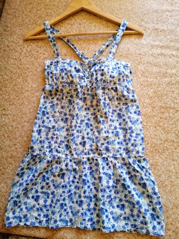 Лёгкий хлопковый сарафан на бретельках с цветочным принтом. Длинна 54 см