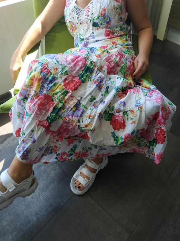 отличный,романтичный котоновый сарафан, Регулируются шлейки,пришитый котоновый поясок с двух сторон,в области спины прошит резинкой,воздушная котоновая подкладка.Заявлен М. ПОГ45 ПОТ40 ПОБ60 Длина132