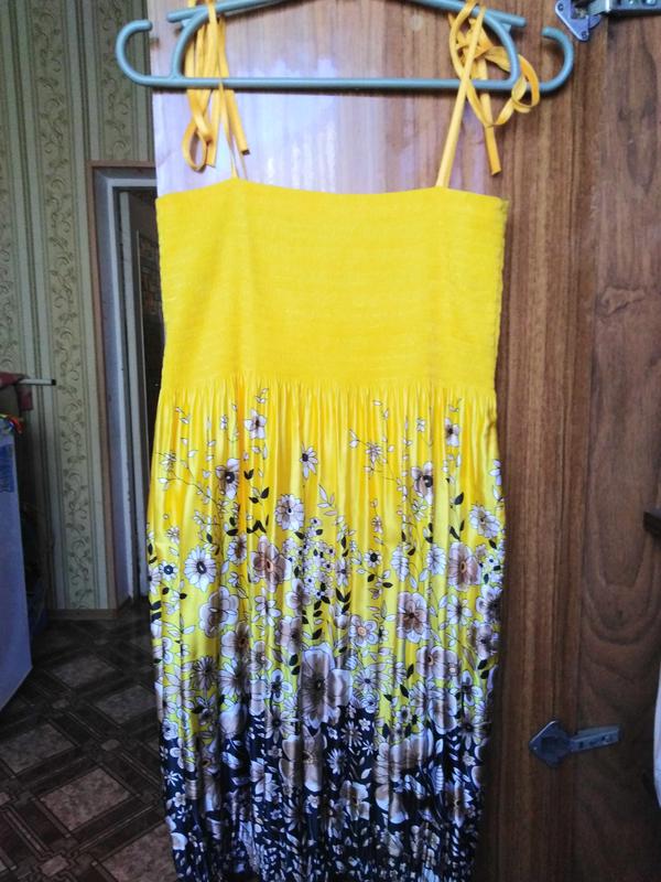 Сарафан в отличном состоянии 42 размер. Длина от брителек 69 см, брительки можно регулировать. Ширина под руками 34 см, тянется.