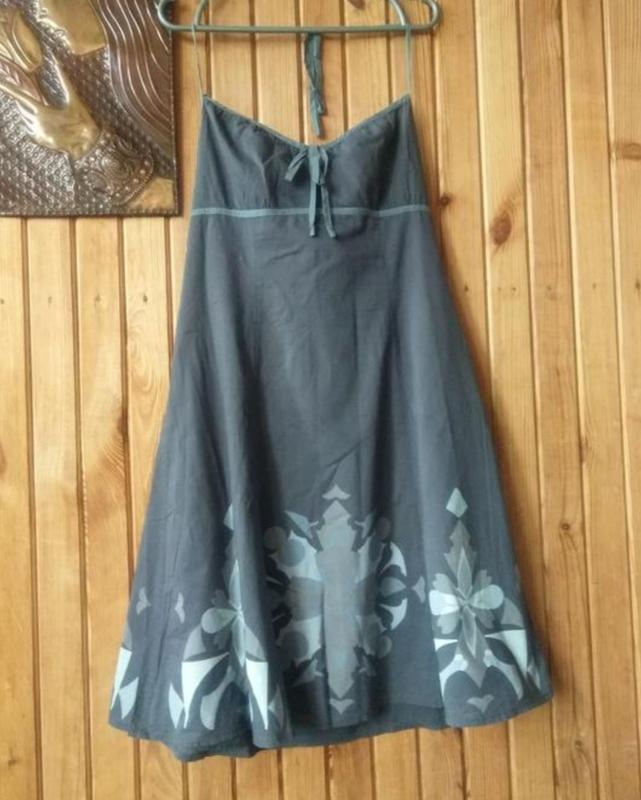 size 🌱 ESPRIT 🌱 10/14 40/44 Німеччина Продаю стильний літній лаконіч- ний бавовняний сарафан кольору хакі відмінної якості. Зав'язується через шию, кокетка під груди. Довжина виробу міді. На підкладці (не дає розтягуватися). Сарафан прикрашен кольоровим принтом і кантиком. ⚡ Відтінок на фото може відріз- нятися від реального через особ- ливості кольору передачі . 👇 Обов'язково ДО покупки звірте виміри: - ПОГ 45 -53 см спинка на гумці - ПОГ 47 см під груди - Боков.шов 79 см - Довжина 87 см попереду - ПОТ 45 см - ПОБ 61-62 cм - ПО низу 94 см вільний крій 🙂 З нетерпінням чекаю у мене на сторінці.Бажаю вдалих покупок і супер настрою від них.