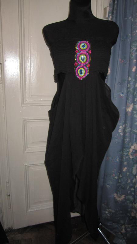сарафан черного цвета.полиэстер.ПОГ по резинке 38см.длина 120см