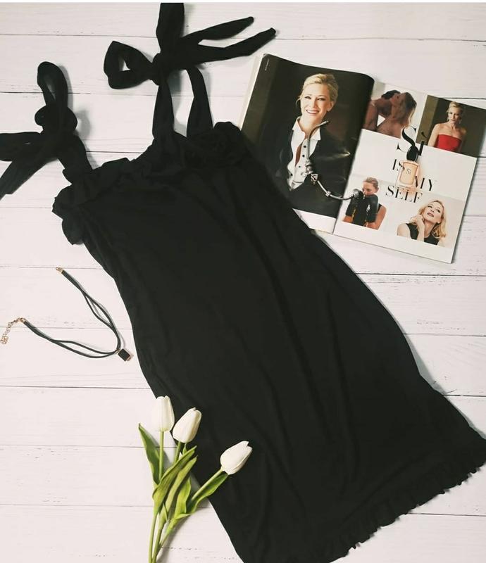 Сарафан чёрного цвета, брительки на завязочках. Материал тянется. Размер 8. Полуобхват груди - 33 см. Полуобхват талии - 32 см. Полуобхват бедер - 40 см. Длина - 63 см. (без брителей).