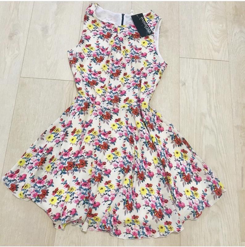 Очень красивый сарафанчик в цветочки. Материал-легкий шифон. Сзади застёгивается на молнии Размер-S Длина-72. Новый.