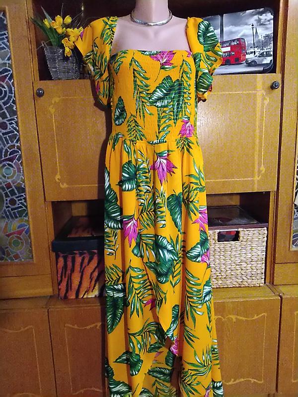 Яркий солнечный сарафан. На плечи 42-47 см. ПОГ без натяжения 39 см. Резинка тянется до 45-47 см. ПОТ 40 см ПОБ 61 см. Длина перед/зад 100/145 см. Подкладка натуральная. Смотрите все мои вещи! Есть разные размеры баталы обувь косметика аксессуары нижнее белье. #800