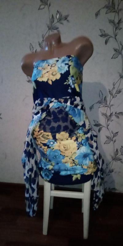 Очень прикольное платье -сарафан. рукава летучая мышка, шифоновые. Можно укав завязывать, можно оставить свободно. Можно вообще их опустить по бокам, на фото показала. А можно придумать свои варианты как закрутить эти рукава))) Длина от резинки сверху до низу платья 80 см. Ширина сверху по резинке в свободном состоянии 31 см, в растянутом 45 см. од грудью где начинаются рукава ширина 39 см, там особо не тянется. Одевала раза два. Есть подкладка, само платье ткань тянется.