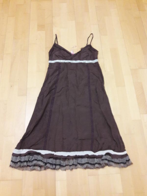 Шелковый сарафан на подкладке из тонкого хлопка. Цвет коричневый. Размер 14/ 42. Маломерит. ПОГ 44 см, в проэкции талии 46 см, ПОБ 63 см, длина 113 см. Состояние идеальное, дефектов нет.
