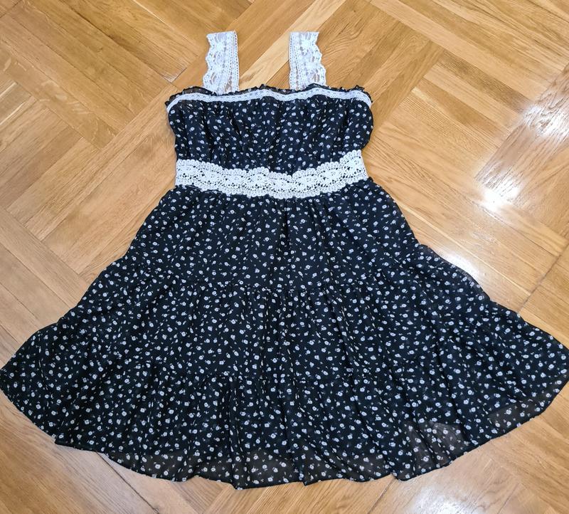 Шовковий сарафан зі вставками мережива. Із зади на спині замочок, зручно одягати . Стан нового.