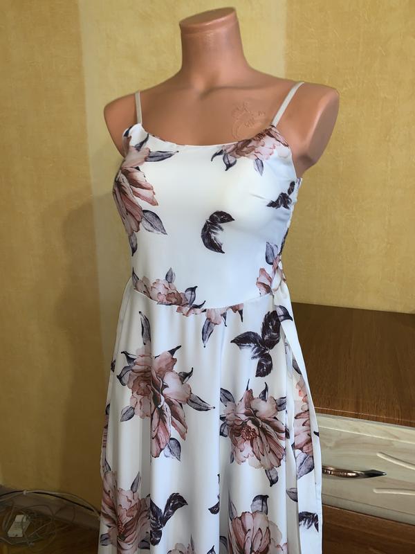 Очень красивый сарафан, сзади на резиночке, одевала раз под беременный животик, спереди длиннее по бокам материал короче