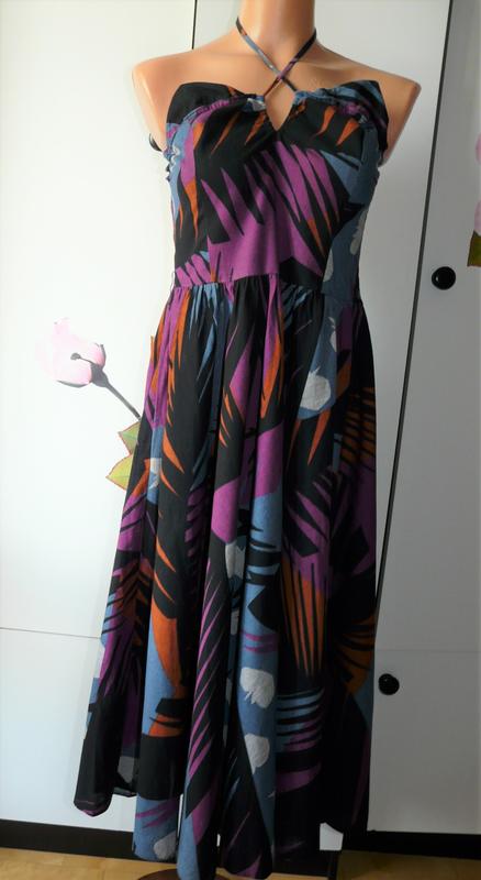 Сарафан с пышной юбкой-солнце, яркая расцветка, есть карманы. Можно по разному завязывать бретельки. Длинна от верхней точки лифа 99см, ПОг до 50см за счёт резинки на спине. Пот 42см. Качественная ткань, хлопок.