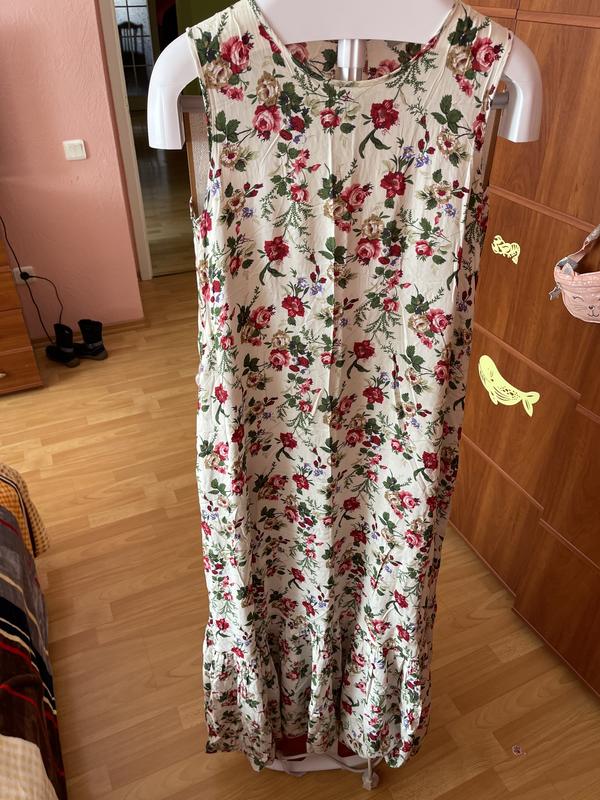 В отличном состоянии. Супер вариант для беременных.Очень легкое. Отходила в нем беременность и пару месяцев после родов. Все скрывает, освежает .