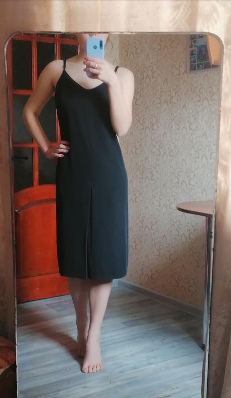 Черный сарафан на брителях (регулируются), обсолютно новый(не подошёл размер), ниже колена, спереди небольшой разрезик
