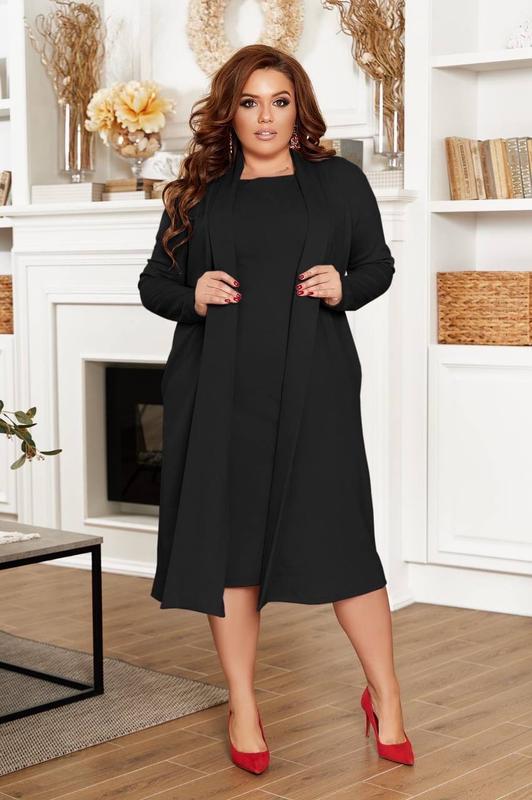Новинки ! Размер 54,56,58,60! Размеры и замеры по изделию : 54 :ОГ 56 ОТ 56 ОБ 62 дл. из 112 56: ОГ 58 ОТ 58 ОБ 64 дл. из 112 58: ОГ 60 ОТ 60 ОБ 68 дл.из 112 60:ОГ 64 ОТ 64 ОБ 70 дл.из 113 Стильный комплект ,платье + накидка скроенное точно по фигуре. В таком наряде ваш силуэт выглядит женственно, а яркий стильный однотон позволяет скрыть незначительные недостатки фигуры. Кокетливая длина, приталенный силуэт. Вырез горловины модели округлый, рукава длинные.В нем можно пойти в гости к друзьям, на работу или на романтическое свидание. Эта практичная и удобная вещь с легкостью завоюет Ваше сердце. Почувствуйте себя неотразимой.