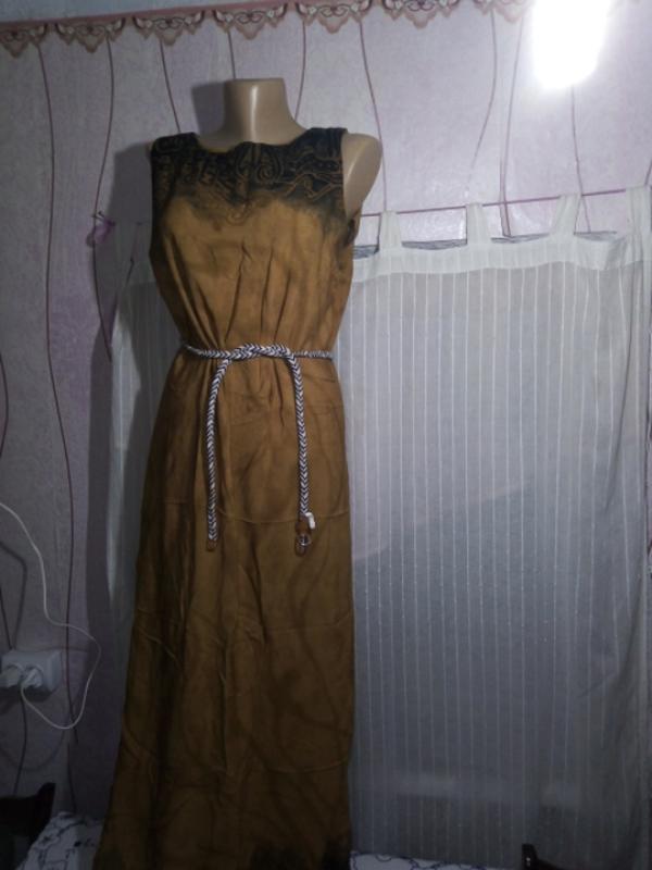 Красивое платье-макси для высокой женщины оригинальной расцветки. На спинке змейка. Без разрезов. Замеры :длина 138 см, пог 53,пот 50,поб 58. Ткань чуть тянется.