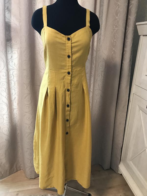 Пог тянется до 50 см , пот тянется до 43 см , поб 67 , длина с бретельками 115 , бирки срезаны . Состав : лён - коттон