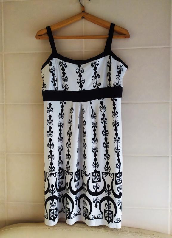 9 Cарафан в очень хорошем состоянии, сзади на завязках. Есть ньюанс, фото 3,4. Ткань хорошо тянется. Замеры: ПОГ 53 см., тянется до 67 см., ПОТ 64 см., тянется до 90 см., ПОТ 90 см., ПОБ 70 см., длина с бретелями 89 см